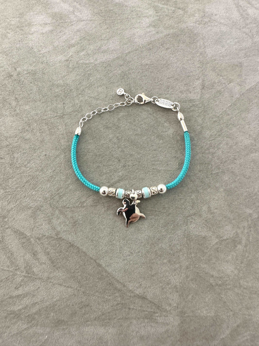 Bracciale Dodo Mariani Bambino Cordino Filo Cerato Azzurro e Tartaruga