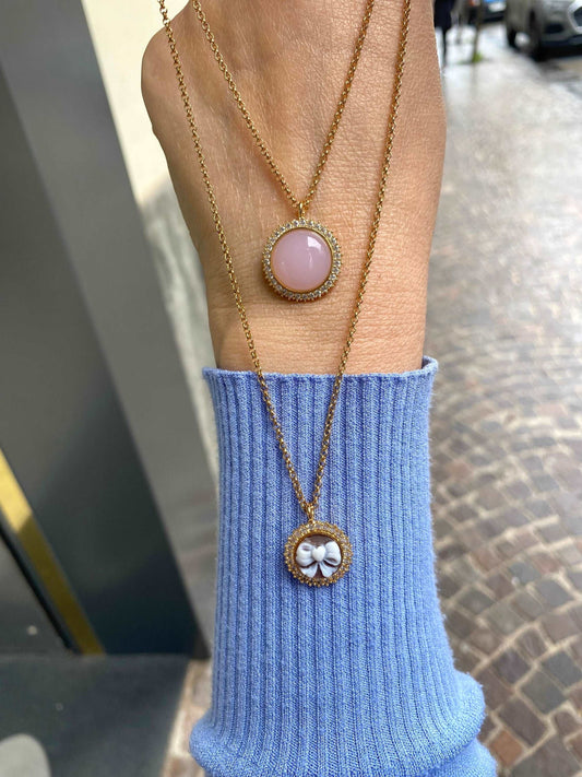 Collana A Doppio Filo Con Cammeo e Quarzo Rosa