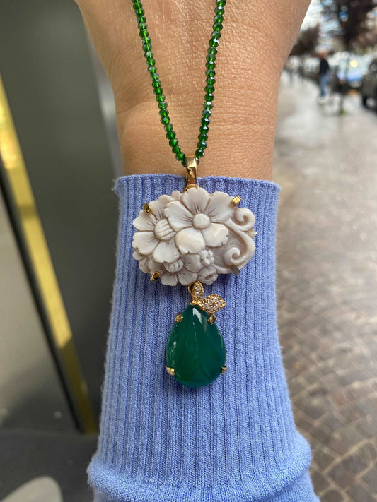 Collana Cammeo Con Volto Donna e Pasta Di Turchese