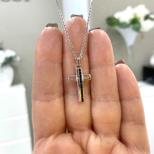 Collana Con Croce Zancan In Acciaio e Spinelli Neri