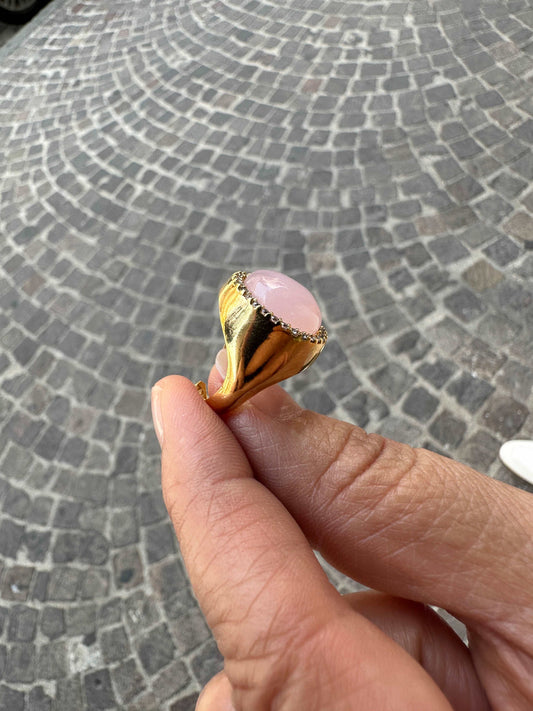 22% DI SCONTOAnello Regolabile In Argento Con Pietra Rosa e Zirconi